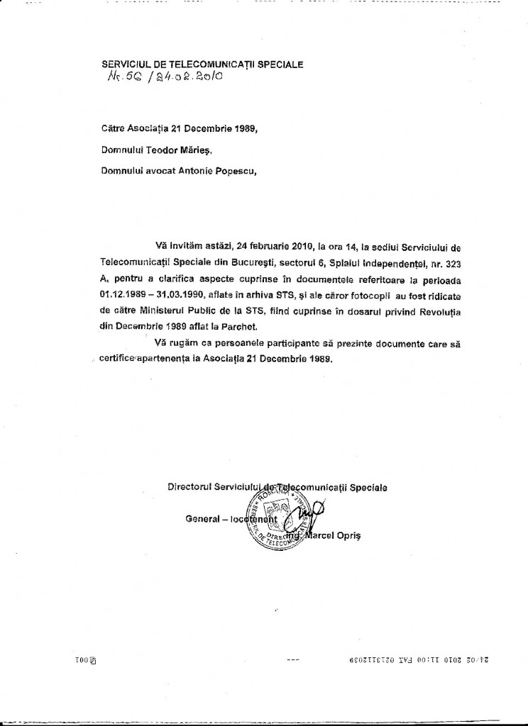 Fax de la Serviciul de Telecomunicatii Speciale 24/02/201006/12/2010 ← Comunicat al Ministerului Public Scrisoare de multumire adresata C.P.R.D. →
