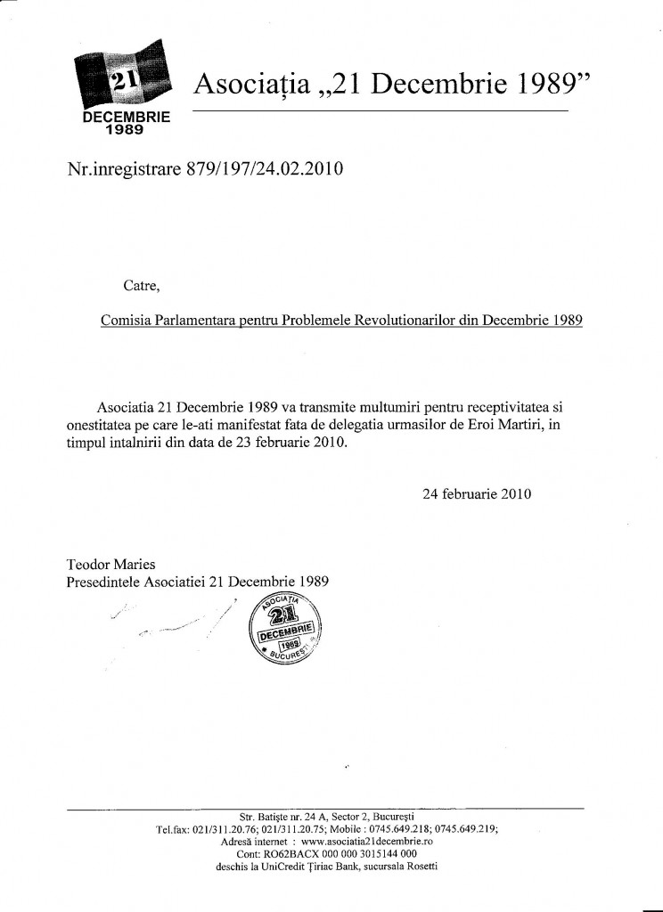 Scrisoare de multumire adresata C.P.R.D. 24/02/2010 ← Fax de la Serviciul de Telecomunicatii Speciale Fax de la Ministerul Public →