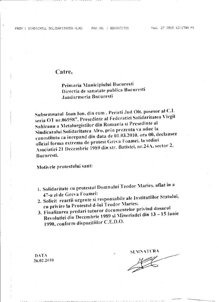 Solidaritate cu greva foamei d-lui. Teodor Maries 26/02/201026/02/2010 ← Circul predării dosarului Revoluţiei Transmisie in direct de la sediul Asociatiei →