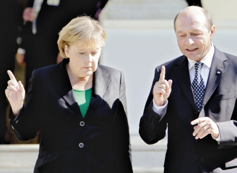 Germania a fost primul destinatar al bunurilor româneşti (5,465 miliarde euro, 19%) şi a vândut în România bunuri în valoare de 6,727 miliarde, aproape 17,5% din importurile noastre). Economia germană a trecută printr-o recesiune relativ blândă din care şi-a revenit spectaculos. Dacă lucrurile ar fi stat mai rău pentru ei, noi ne-am fi aflat în pragul catastrofei. Dacă economia noastră depinde în asemenea grad de cea germană, este limpede că şi politicile anticriză depind de cele germane. Atunci când cancelarul Merkel a spus stop „stimulilor” şi cheltuielilor pe datorie scăpate de sub control şi că e timpul pentru măsuri de austeritate şi ţinerea în frâu a deficitelor, Bucureştiul avea puţine opţiuni şi a trebuit să se conformeze. Ieri, doamna Merkel a declarat că România aplică în prezent „măsuri destul de dure” de austeritate, dar a ţinut să precizeze că, „odată create structurile, acestea pot constitui o bază pe care se poate construi creşterea economică”, ceea ce reprezintă o susţinere discretă a actualului curs, dar şi o recunoaştere a faptului că nu suntem încă acolo. O cale spre creşterea economică este absorbţia fondurilor comunitare, o problemă în care Germania şi-a oferit o asistenţă mai mult decât binevenită.