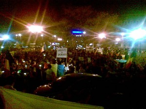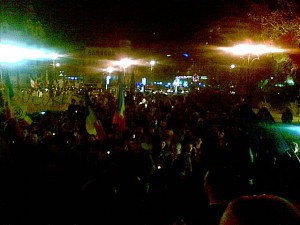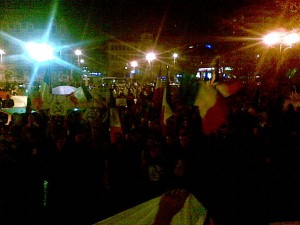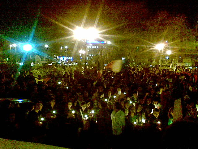Şi astă seară, deşi au existat diverse forme de a fi blocată manifestaţia, tinerii basarbeni şi bucureşteni sau adunat cu sutele în faţa Tetrului Naţional, pentru a-şi susţine colegii şi prietenii de la Chişinău.