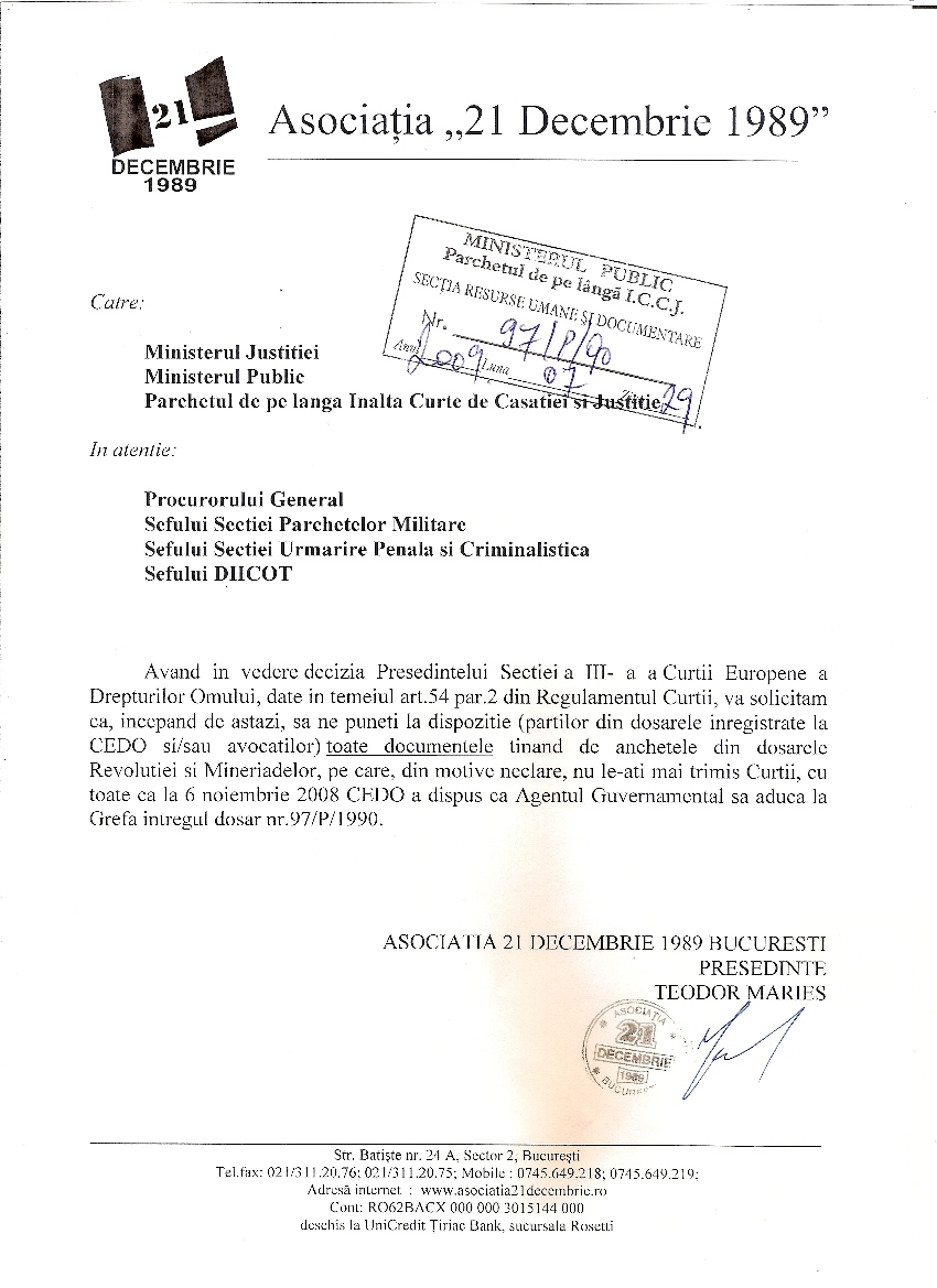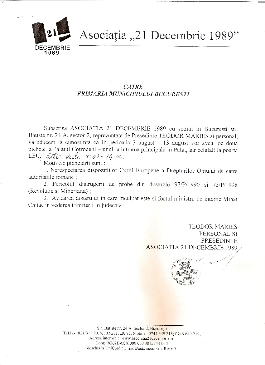 Salvarea istoriei recente 30/07/2009 ← NUP pentru 13-15 Iunie 1990 Apel către Preşedintele României →