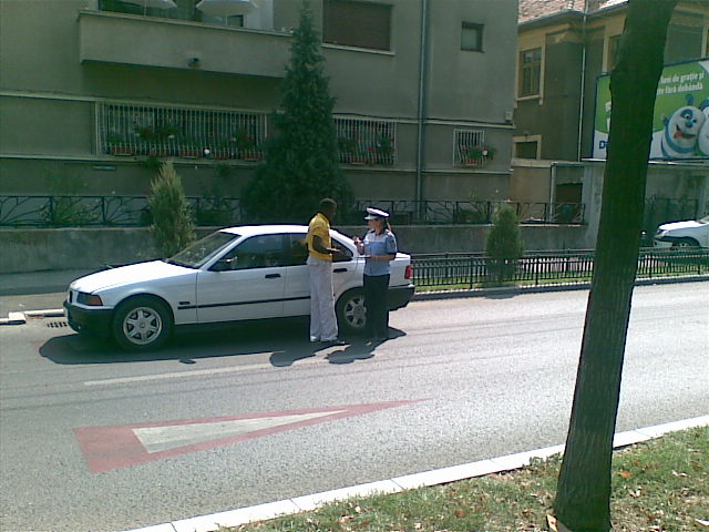 Când am ajuns, în faţa locului unde stăm zilnic, se afla o maşină a poliţiei cu o poliţistă şi un poliţist, la volan. Doamna poliţistă discuta ceva cu un domn de culoare, semnând şi nişte hârtii.
