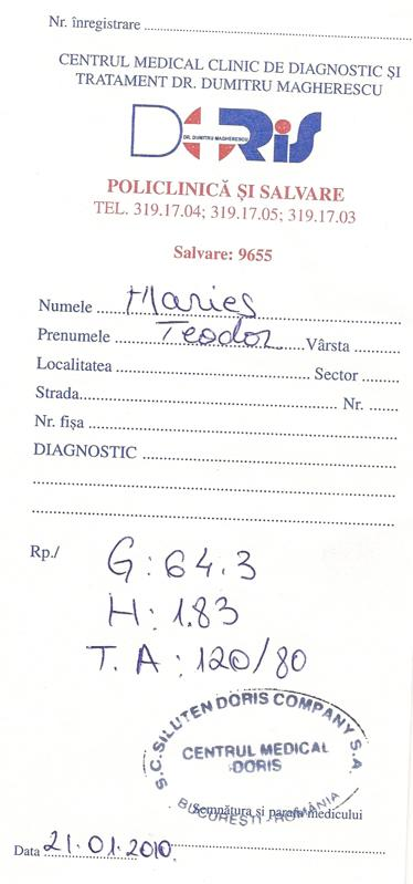 Analize medicale – 21.01.2010 21/01/201024/01/2010 ← Comunicat de presă – Scrisoare către Ministerul Apărării Naţionale GREVA FOAMEI II – ZIUA 10 →
