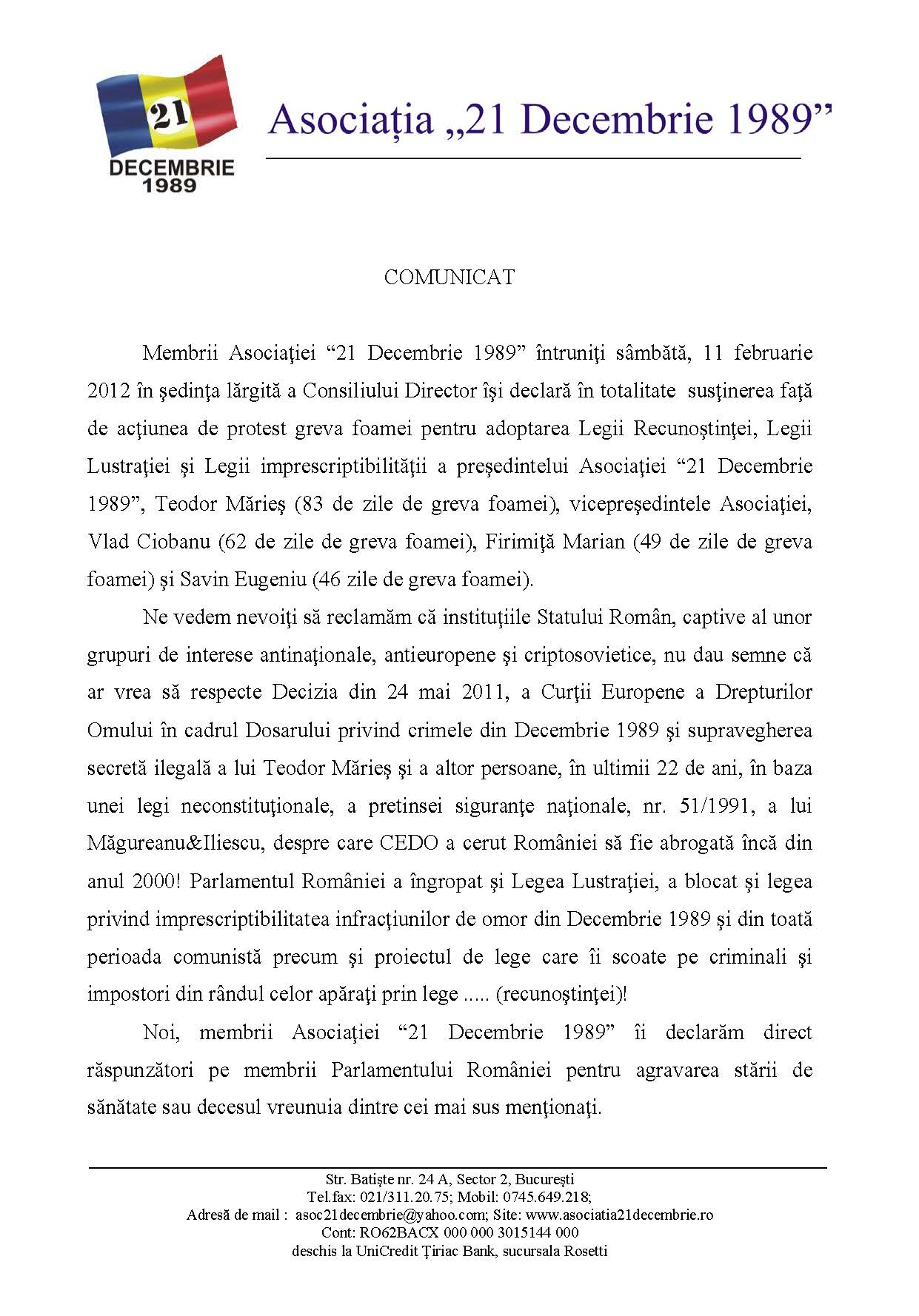 Comunicat 12/02/201212/02/2012 ← Poziţia exprimată de secretarul de stat George Costin Ne vom prezenta la comisie →