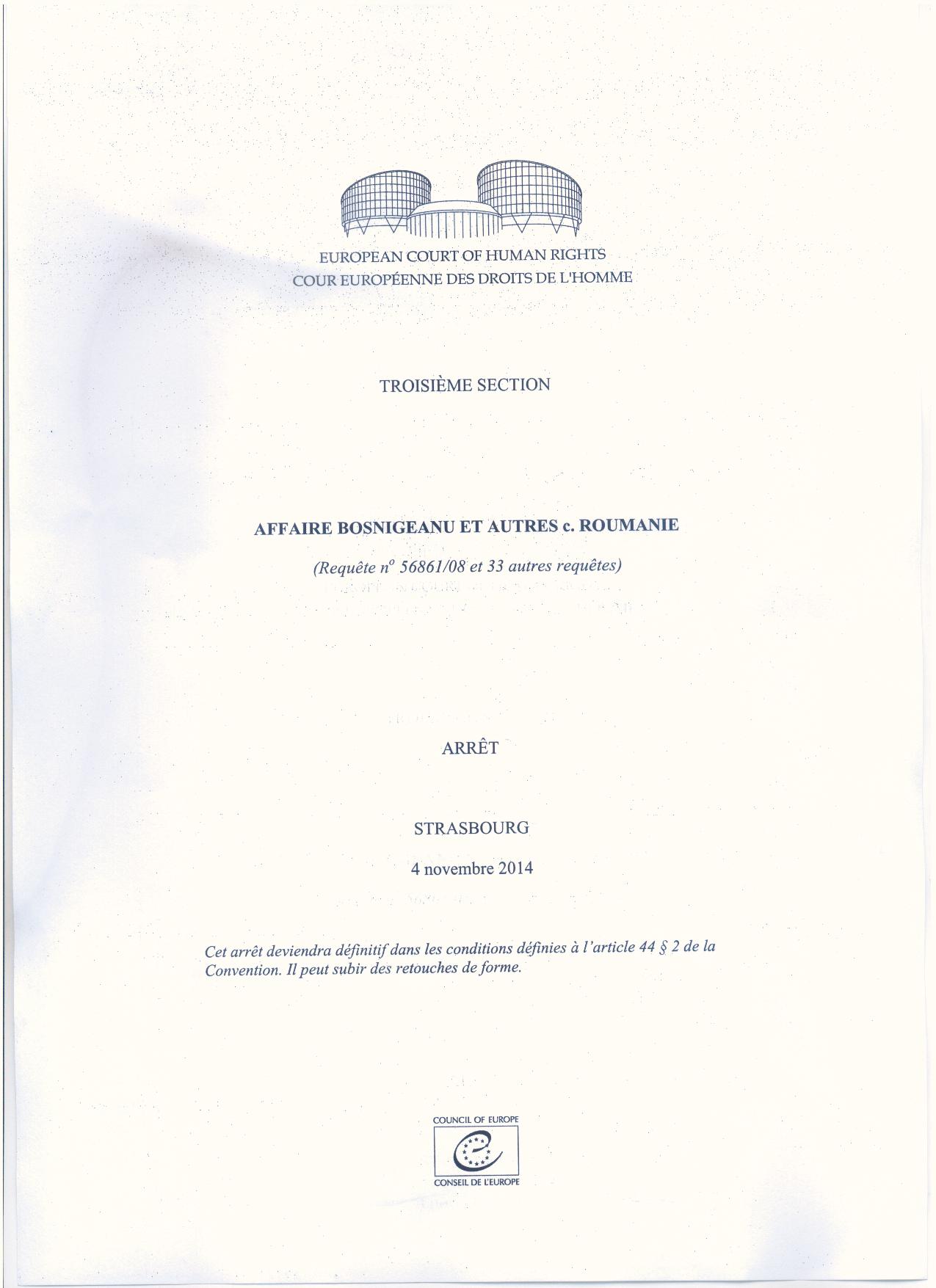 BOSNIGEANU şi ALŢII vs. ROMÂNIA