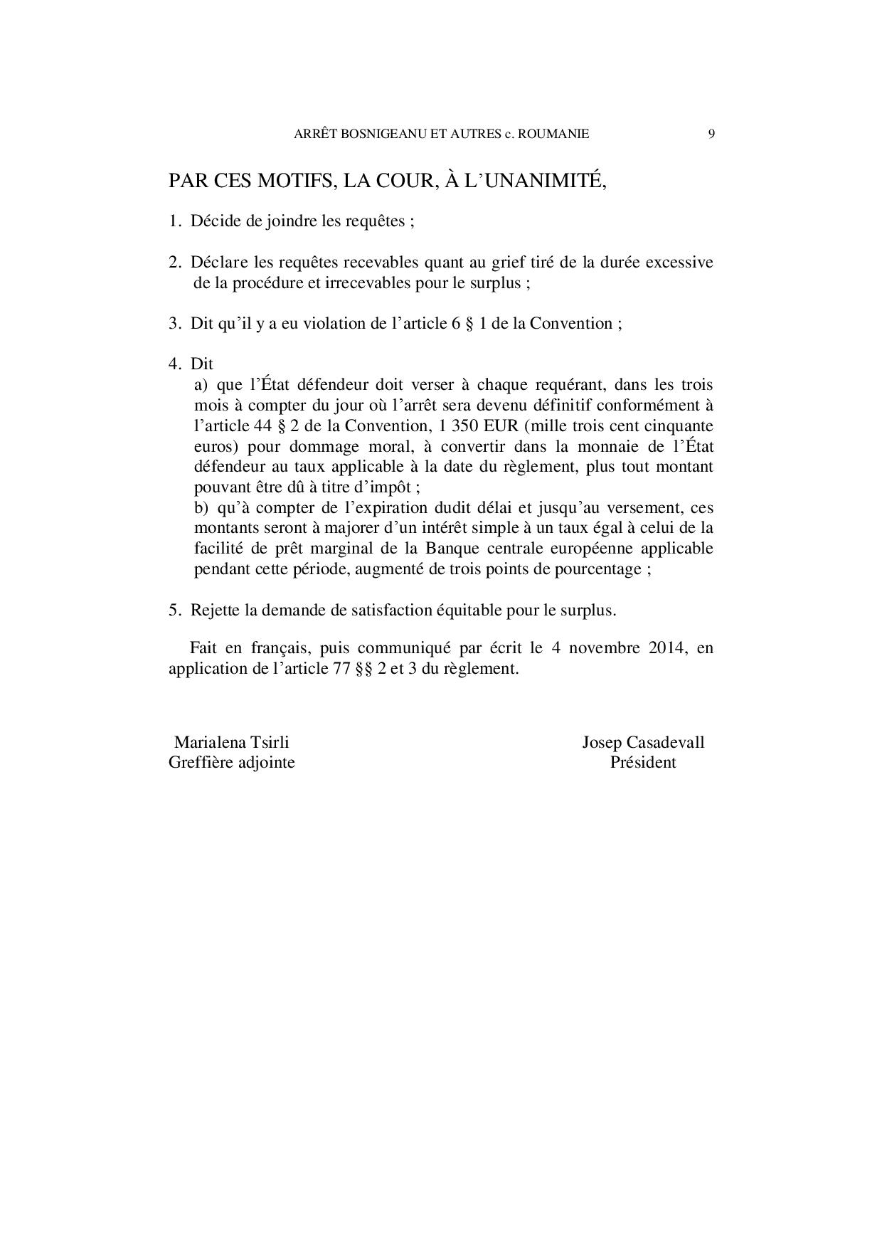 Conform aceleiași decizii, cele 34 de dosare ale reclamanților, membri ai Asociației 21 decembrie 1989, au fost conexate, urmând ca aceştia să primească daune morale în valoare de 1.350 de euro fiecare.